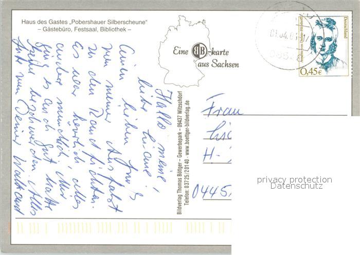 73658658 alte Postkarte Pobershau Haus des Gastes Pobershauer Silberscheune Planwagen Festsaal postalisch gelaufen Erhaltung siehe scans [FriedD77] KatCode: 11110014181300