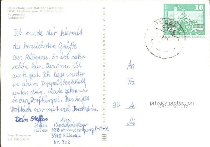 72287566 alte Postkarte Pobershau Oberschule Rat der Gemeinde Katzenstein postalisch gelaufen Erhaltung siehe scans KatCode: 11110014181300