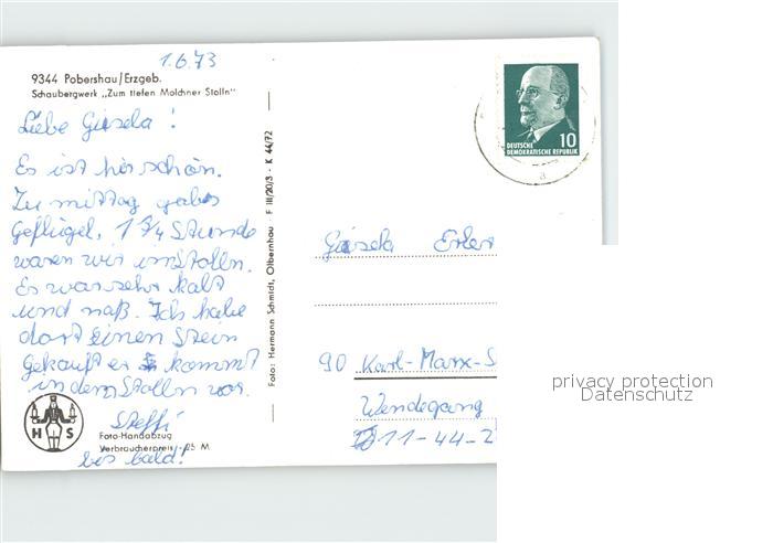 72360951 alte Postkarte Pobershau Schaubergwerk postalisch gelaufen Erhaltung siehe scans KatCode: 11110014181300
