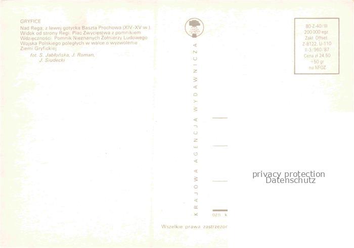 74157725 Pobierowo Gryfice Greifenberg PL Baszta-Prochowa Rega Kirche Plac-Zwyciestwa Denkmal Soldaten Turm Fluss postalisch nicht gelaufen Erhaltung siehe scans [Karloger] KatCode: 11410