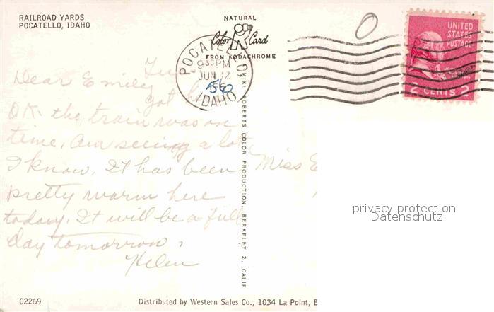 72659418 old postcard Pocatello Railroad Yards postalisch gelaufen Erhaltung siehe scans [WerneD78] KatCode: 14140140000000