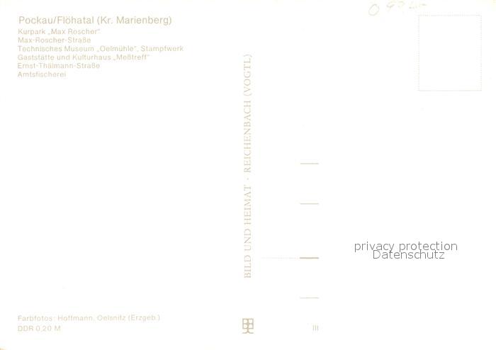 73099396 Pockau Kurpark Max Roscher Techn Museum Oelmuehle Stampfwerk Gaststaette Messtreff Ernst Thaelmann Strasse Amtsfischerei postalisch nicht gelaufen Erhaltung siehe scans [WerneD78] KatCode: 11110014181310
