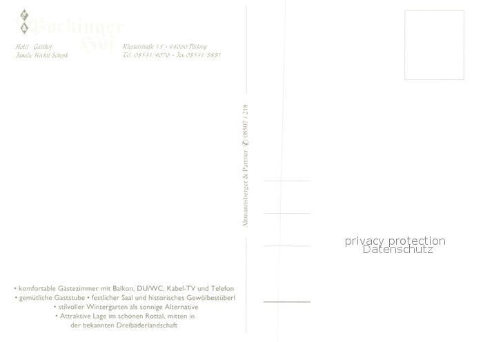 73726304 Pocking Pockinger Hof Hotel Restaurant postalisch nicht gelaufen Erhaltung siehe scans [FriedD77] KatCode: 11110009275141