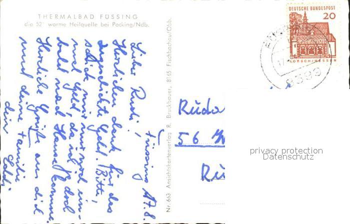 72293426 alte Postkarte Pocking Thermalbad Fuessing Kuranwendungen Karikatur postalisch gelaufen Erhaltung siehe scans KatCode: 11110009275141