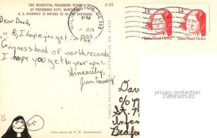 73060787 old postcard Pocomoke City Pocomoke River postalisch gelaufen Erhaltung siehe scans [WerneD78] KatCode: 14140220000000