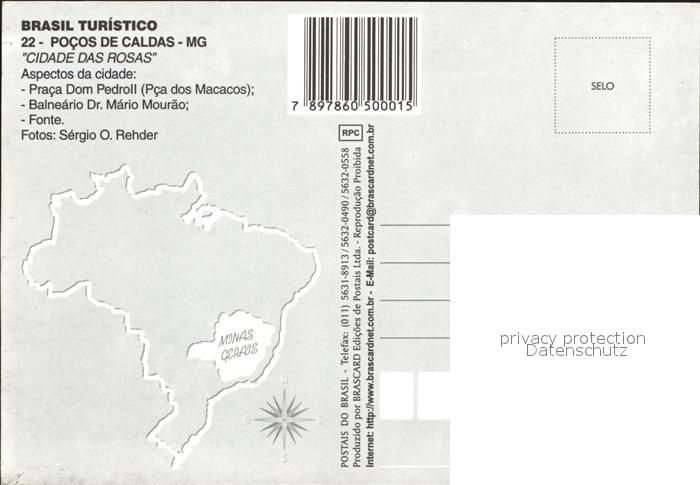 Pocos de Caldas Praca Dom Pedroll Balneario Dr Mourao Fonte postalisch nicht gelaufen Erhaltung siehe scans