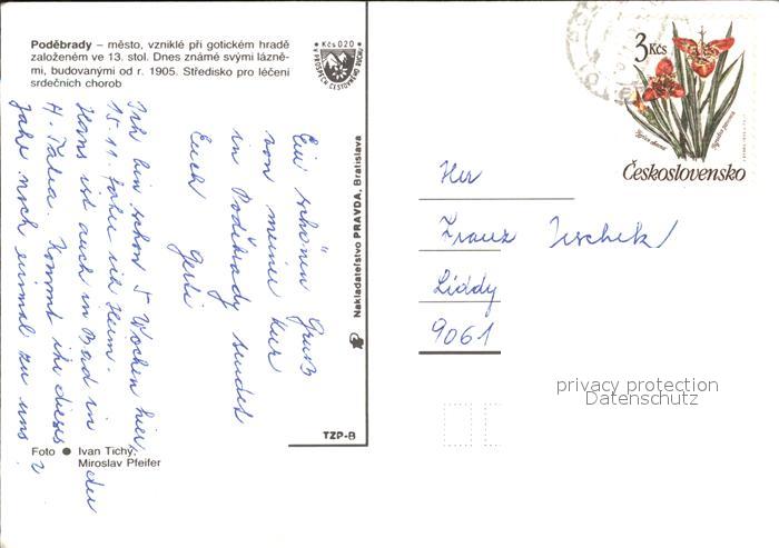 old postcard Podebrady Kurhaus Kurpark postalisch gelaufen Erhaltung siehe scans