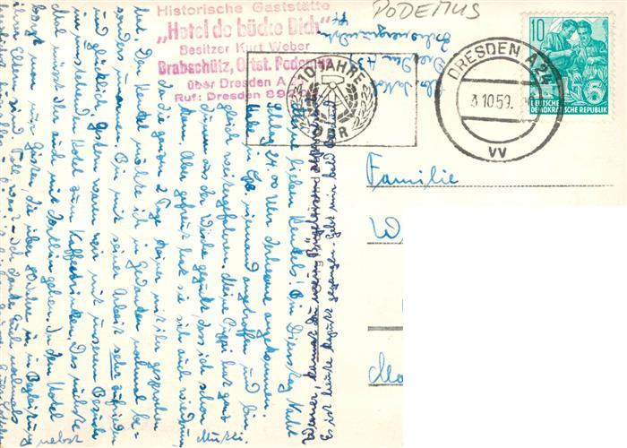 73887524 alte Postkarte Podemus Dresden Hotel de buecke Dich postalisch gelaufen Erhaltung siehe scans [FriedD77] KatCode: 11110014262000