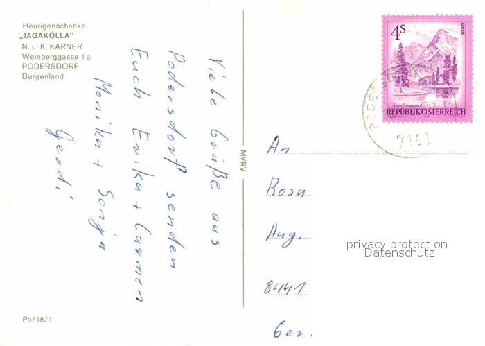 72673324 alte Postkarte Podersdorf Neusiedler See Heurigenschenke Jagakoella Seglerhafen Reiten postalisch gelaufen Erhaltung siehe scans [FriedD77] KatCode: 11390112010718