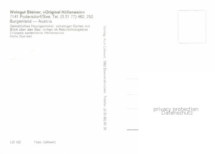 72857080 Podersdorf Neusiedler See Weingut Steiner Original Hoellenwein Heuriger zur Hoelle Gartenrestaurant postalisch nicht gelaufen Erhaltung siehe scans [FriedD77] KatCode: 11390112010718