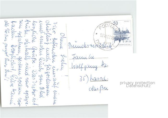 old postcard Podnart Insel Kirche Fliegeraufnahme postalisch gelaufen Erhaltung siehe scans
