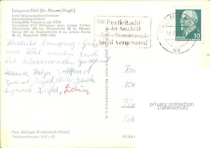 72329823 alte Postkarte Poehl Vogtland Talsperre postalisch gelaufen Erhaltung siehe scans KatCode: 11110014178490