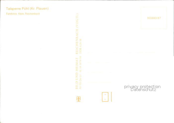 72279739 Poehl Vogtland Talsperre postalisch nicht gelaufen Erhaltung siehe scans KatCode: 11110014178490