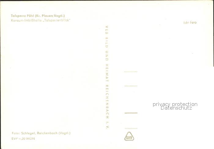72054049 Poehl Vogtland Talsperre Poehl Konsum Imbisshalle Talsperrenblick postalisch nicht gelaufen Erhaltung siehe scans KatCode: 11110014178490