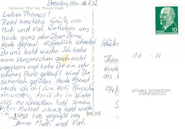 72711524 alte Postkarte Poehl Vogtland Talsperre Stausee Sperrmauer Campingplatz Bootsanleger postalisch gelaufen Erhaltung siehe scans [FriedD77] KatCode: 11110014178490