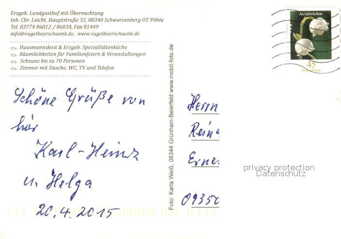 73666647 alte Postkarte Poehla Erzgebirge Landgasthof Vugelbeerschaenk Gastraeume postalisch gelaufen Erhaltung siehe scans [WerneD78] KatCode: 11110014191240
