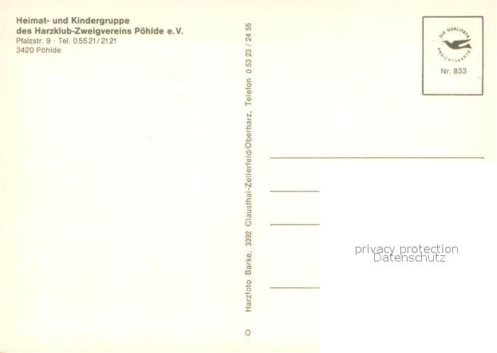 73739276 Poehlde Heimat und Kindergruppe des Harzklub Zweigvereins Poehlde postalisch nicht gelaufen Erhaltung siehe scans [WerneD78] KatCode: 11110003156009