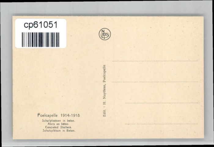 10785866 Poelcapelle Poelkapelle Ypern West-Vlaanderen Belgie Schuilplaatsen Schutzplaetzen Beton postalisch nicht gelaufen Alte Ansichtskarte Postkarte Katcode 11070033001522