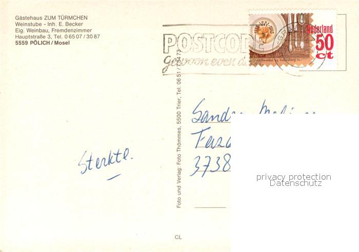 73641612 alte Postkarte Poelich Gaestehaus Zum Tuermchen Panorama Moseltal postalisch gelaufen Erhaltung siehe scans [FriedD77] KatCode: 11110007235108
