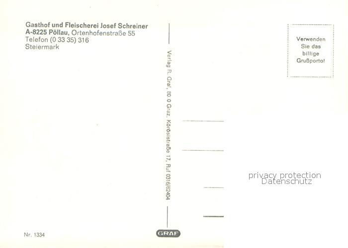 73634452 Poellau Gasthof Fleischerei Schreiner postalisch nicht gelaufen Erhaltung siehe scans [FriedD77] KatCode: 11390224060722