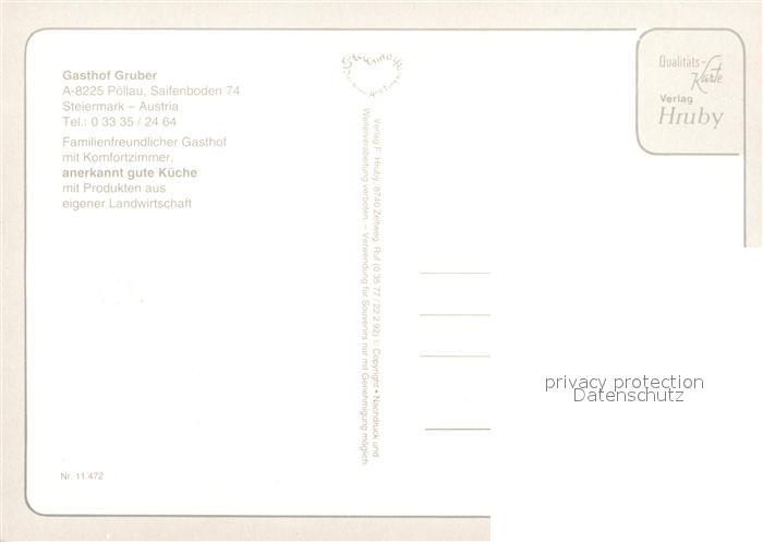 73244863 Poellau Gasthof Gruber postalisch nicht gelaufen Erhaltung siehe scans [KathaD81] KatCode: 11390224060722