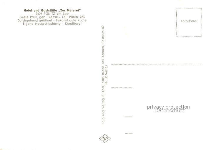 73715981 Poenitz See Hotel und Gaststaette Zur Meierei postalisch nicht gelaufen Erhaltung siehe scans [WerneD78] KatCode: 11110001055044