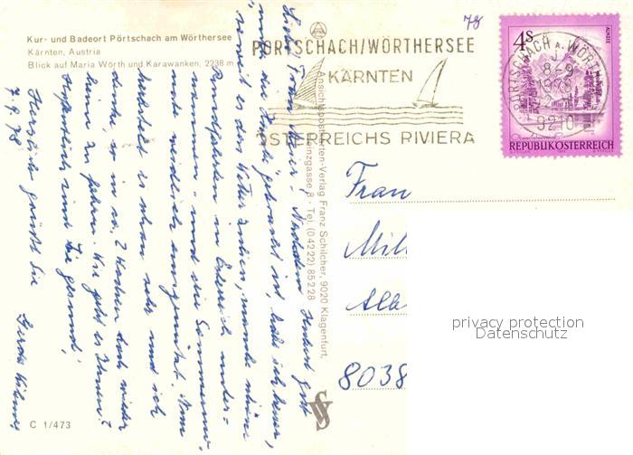 72851888 alte Postkarte Poertschach Woerthersee Blick auf Maria Woerth Karawanken postalisch gelaufen Erhaltung siehe scans [AndreD76] KatCode: 11390211020424