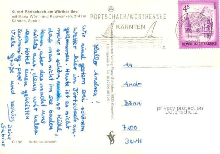 73324120 alte Postkarte Poertschach Woerthersee Fliegeraufnahme Maria Woerth Karawanken postalisch gelaufen Erhaltung siehe scans [PaolaD17] KatCode: 11390211020424