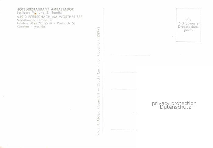 12602820 Poertschach Woerthersee Hotel Restaurant Ambassador postalisch nicht gelaufen Erhaltung siehe scans [LiesaD40] KatCode: 11390211020424