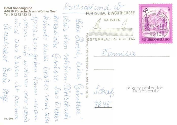 72900437 alte Postkarte Poertschach Woerthersee Hotel Sonnengrund postalisch gelaufen Erhaltung siehe scans [FriedD77] KatCode: 11390211020424