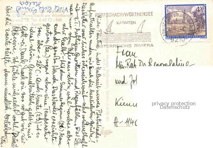 74098764 alte Postkarte Poertschach Woerthersee Kaernten AT Gaestehaus Capellari Gaststube Liegewiese Tischtennis postalisch gelaufen Erhaltung siehe scans [WerneD78] KatCode: 11390211020424