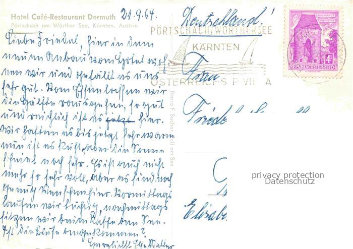 74155965 alte Postkarte Poertschach Woerthersee Kaernten AT Hotel Restaurant Dermuth Garten postalisch gelaufen Erhaltung siehe scans [WerneD78] KatCode: 11390211020424