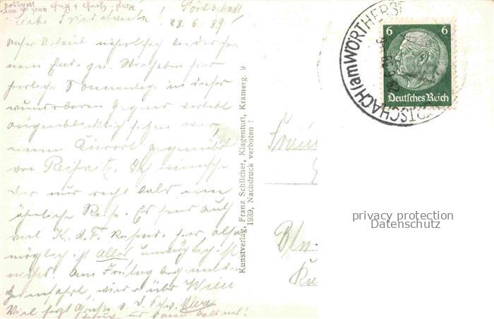 74037149 alte Postkarte Poertschach Woerthersee Kaernten AT Panorama Blick gegen Karawanken postalisch gelaufen Fliegeraufnahme Erhaltung siehe scans [FriedD77] KatCode: 11390211020424