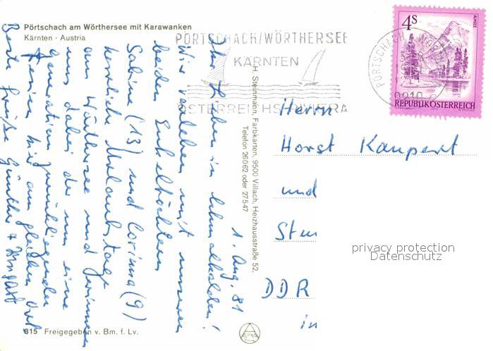 72699909 alte Postkarte Poertschach Woerthersee mit Karawanken Fliegeraufnahme postalisch gelaufen Erhaltung siehe scans [FriedD77] KatCode: 11390211020424