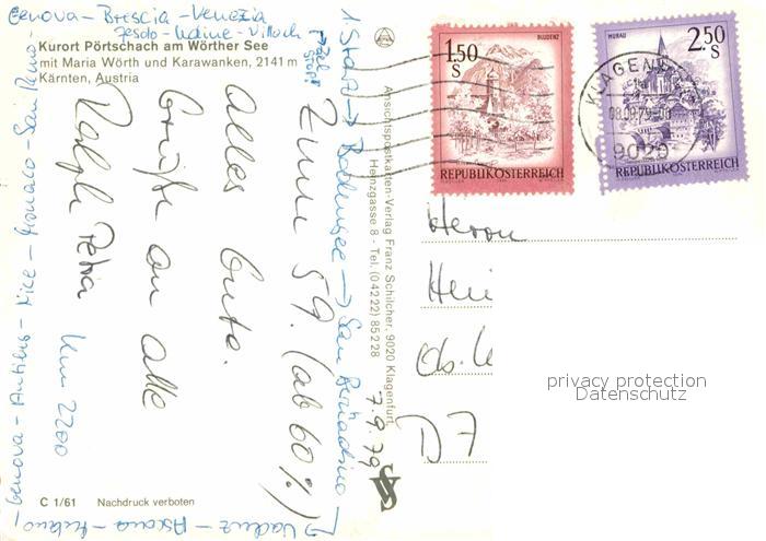 72770439 alte Postkarte Poertschach Woerthersee mit Maria Woerth und Karawanken Fliegeraufnahme postalisch gelaufen Erhaltung siehe scans [WerneD78] KatCode: 11390211020424