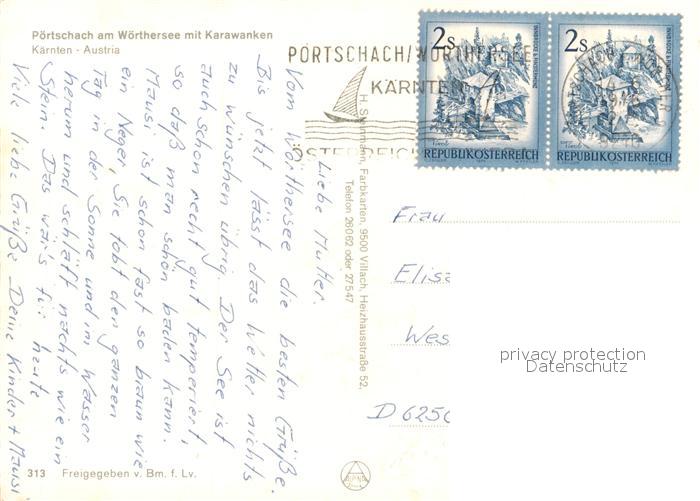73363611 alte Postkarte Poertschach Woerthersee Panorama mit Karawanken Fliegeraufnahme postalisch gelaufen Erhaltung siehe scans [FriedD77] KatCode: 11390211020424