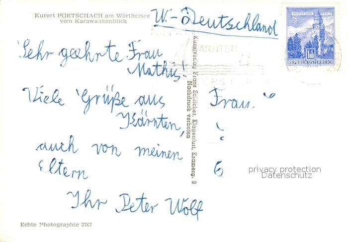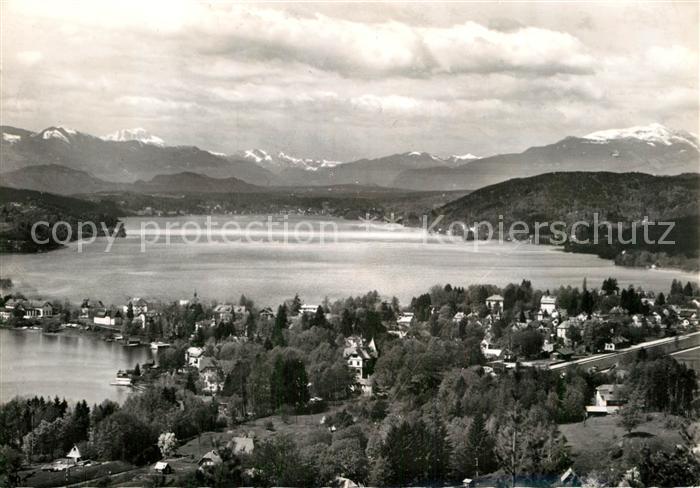 72954556 alte Postkarte Poertschach Woerthersee Panorama vom Karawankenblick postalisch gelaufen Erhaltung siehe scans [FriedD77] KatCode: 11390211020424