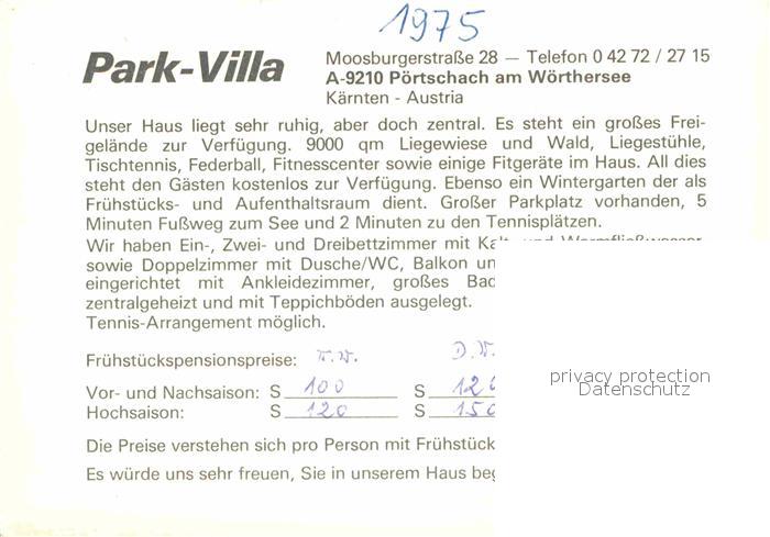 12637345 Poertschach Woerthersee Park-Villa postalisch nicht gelaufen Werbekarte (keine Postkarte) Erhaltung siehe scans [LiesaD40] KatCode: 11390211020424