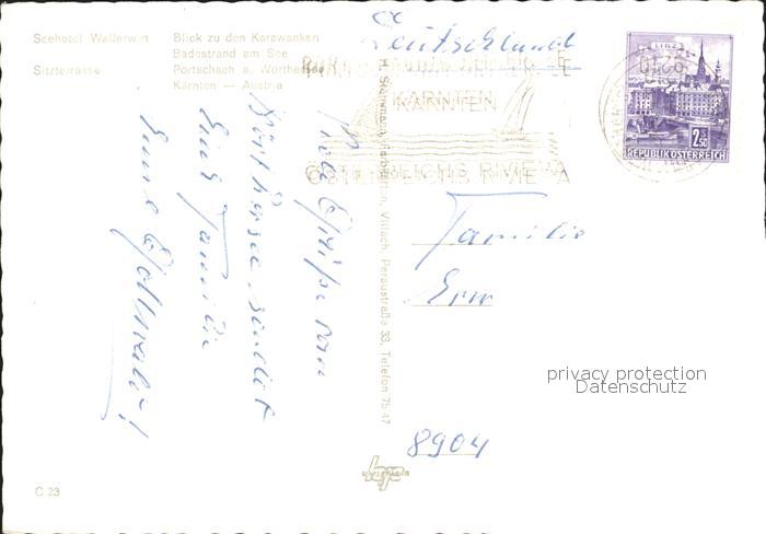 72279852 alte Postkarte Poertschach Woerthersee Seehotel Wallerwirt Badestrand Segeln Karawanken postalisch gelaufen Erhaltung siehe scans KatCode: 11390211020424