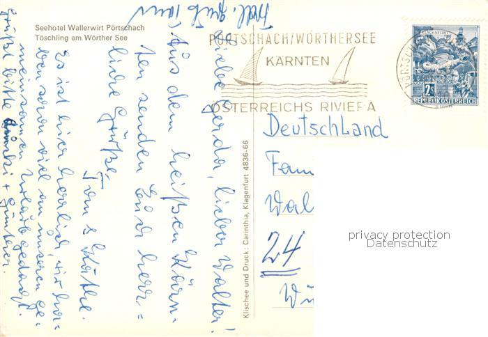 73856565 alte Postkarte Poertschach Woerthersee Seehotel Wallerwirt postalisch gelaufen Erhaltung siehe scans [WerneD78] KatCode: 11390211020424