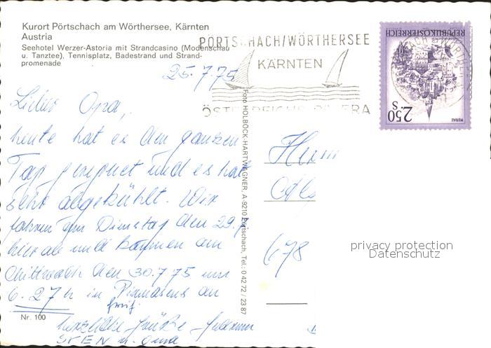 72257618 alte Postkarte Poertschach Woerthersee Seehotel Werzer Astoria Modenschau Tennisplatz Strand Promenade Bootsanleger postalisch gelaufen Erhaltung siehe scans KatCode: 11390211020424
