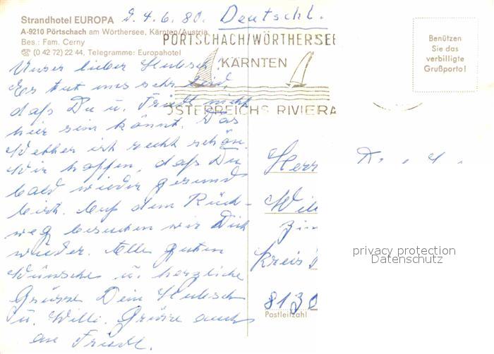 72755519 alte Postkarte Poertschach Woerthersee Strandhotel Europa Terrasse postalisch gelaufen Erhaltung siehe scans [WerneD78] KatCode: 11390211020424