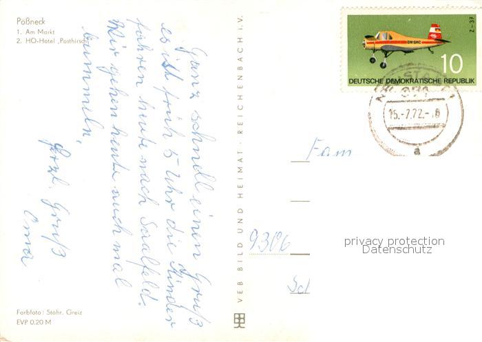 73742363 alte Postkarte Poessneck Am Markt Posthirsch Hotel postalisch gelaufen Erhaltung siehe scans [WerneD78] KatCode: 11110016075085