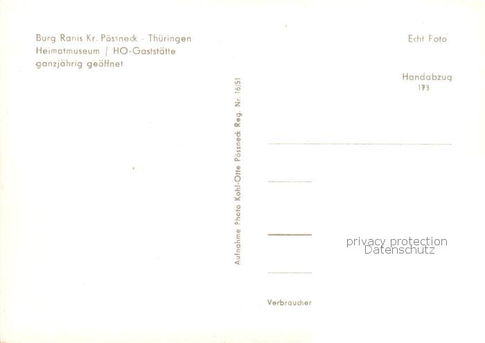 73845729 Poessneck Burg Ranis Heimatmuseum HO Gaststaette postalisch nicht gelaufen Erhaltung siehe scans [WerneD78] KatCode: 11110016075085