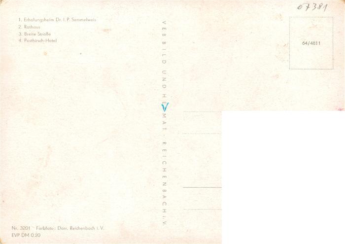 73901029 Poessneck Erholungsheim Semmelweis Rathaus Breite Strasse Posthirsch Hotel postalisch nicht gelaufen Erhaltung siehe scans [WerneD78] KatCode: 11110016075085