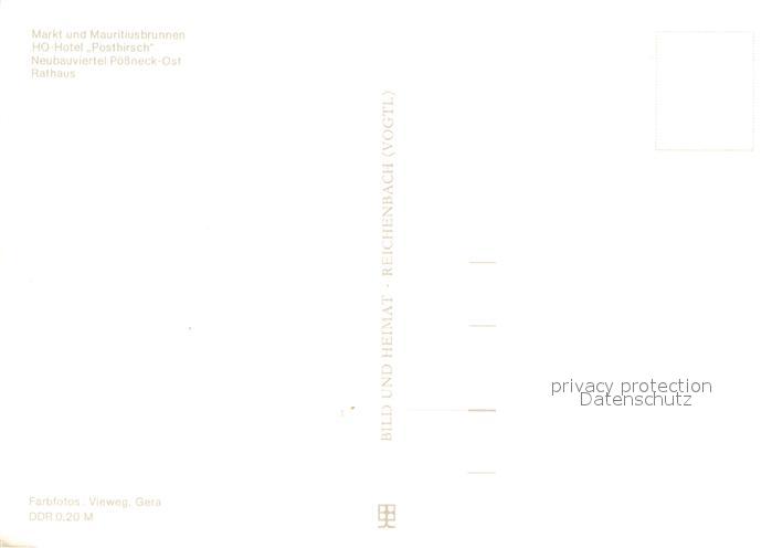 73649776 Poessneck Markt Mauritiusbrunnen HO Hotel Posthirsch Neubauviertel Rathaus postalisch nicht gelaufen Erhaltung siehe scans [FriedD77] KatCode: 11110016075085