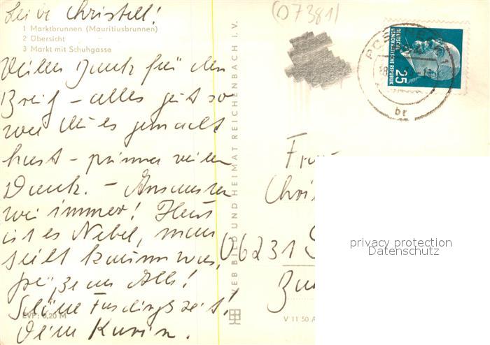 73140206 alte Postkarte Poessneck Marktbrunnen Mauritiusbrunnen uebersicht Markt Schuhgasse postalisch gelaufen Erhaltung siehe scans [FriedD77] KatCode: 11110016075085