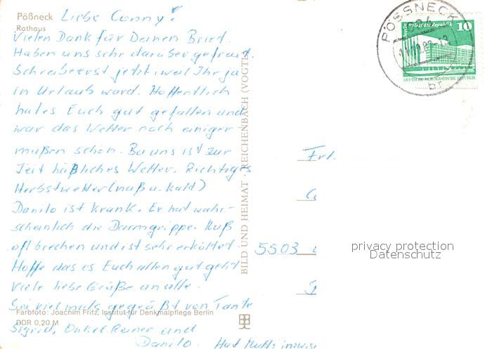 73071460 alte Postkarte Poessneck Rathaus postalisch gelaufen Erhaltung siehe scans [NatalD47] KatCode: 11110016075085
