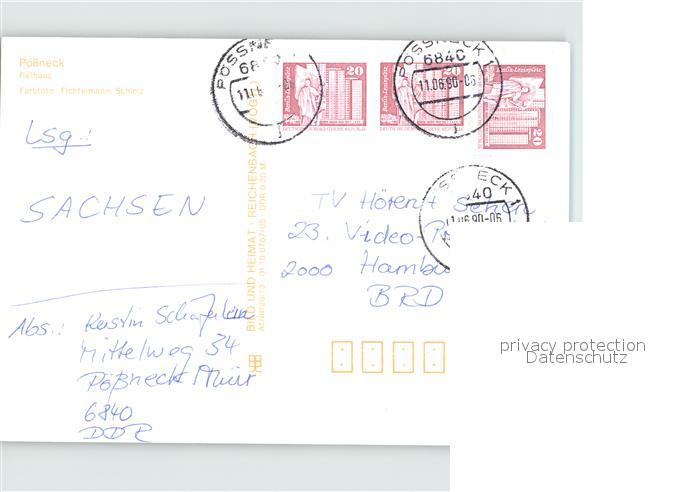 72413851 alte Postkarte Poessneck Rathaus Brunnen postalisch gelaufen Erhaltung siehe scans KatCode: 11110016075085