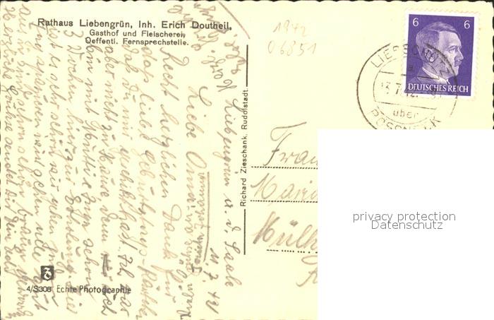 31714290 alte Postkarte Poessneck Rathaus Liebesgruen Gasthaus Fleischerei postalisch gelaufen Erhaltung siehe scans KatCode: 11110016075085